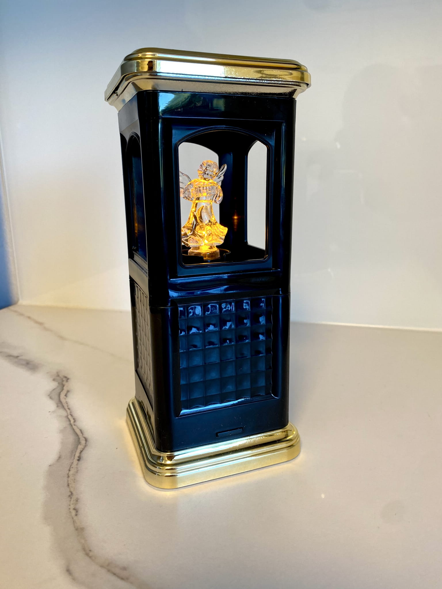 Piękny znicz w eleganckim czarno-złotym kolorze, ozdobiony delikatną figurką aniołka, który po zmroku subtelnie się rozświetla. Symbolizuje pamięć, spokój i obecność tych, którzy odeszli, ale pozostają w sercu.