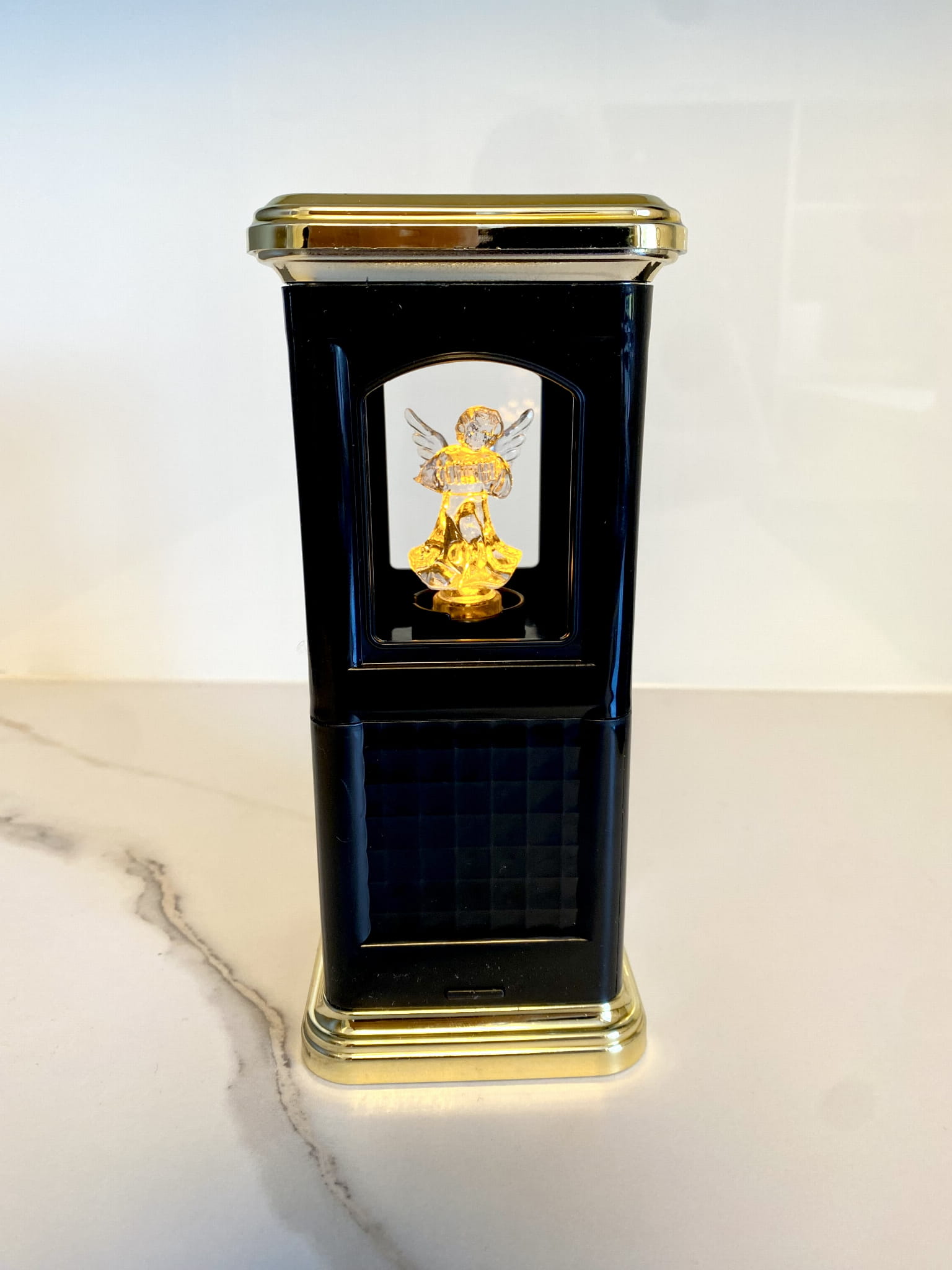 Znicz solarno-elektryczny z aniołkiem – czarno-złoty