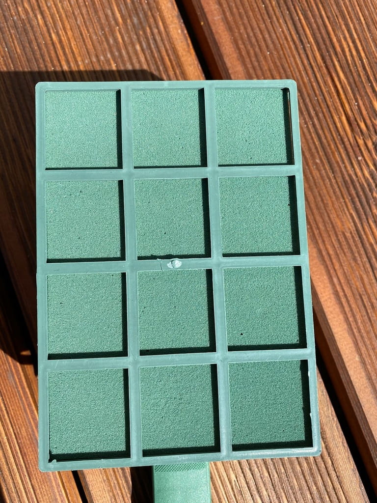 - Gąbka mokra – doskonale chłonie i utrzymuje wodę, nawadniając kwiaty