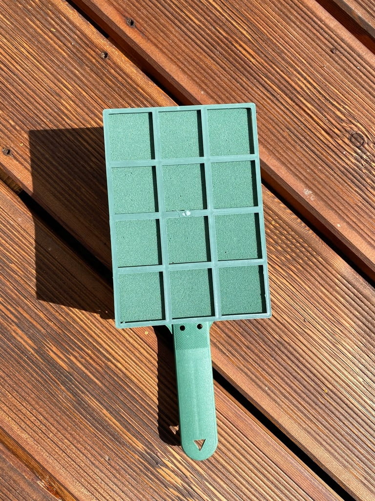 - Stabilna konstrukcja – gąbka dobrze trzyma łodygi, nie osuwa się