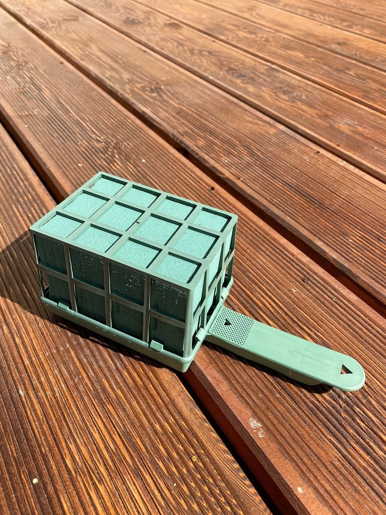 - Stabilna konstrukcja – gąbka dobrze trzyma łodygi, nie osuwa się