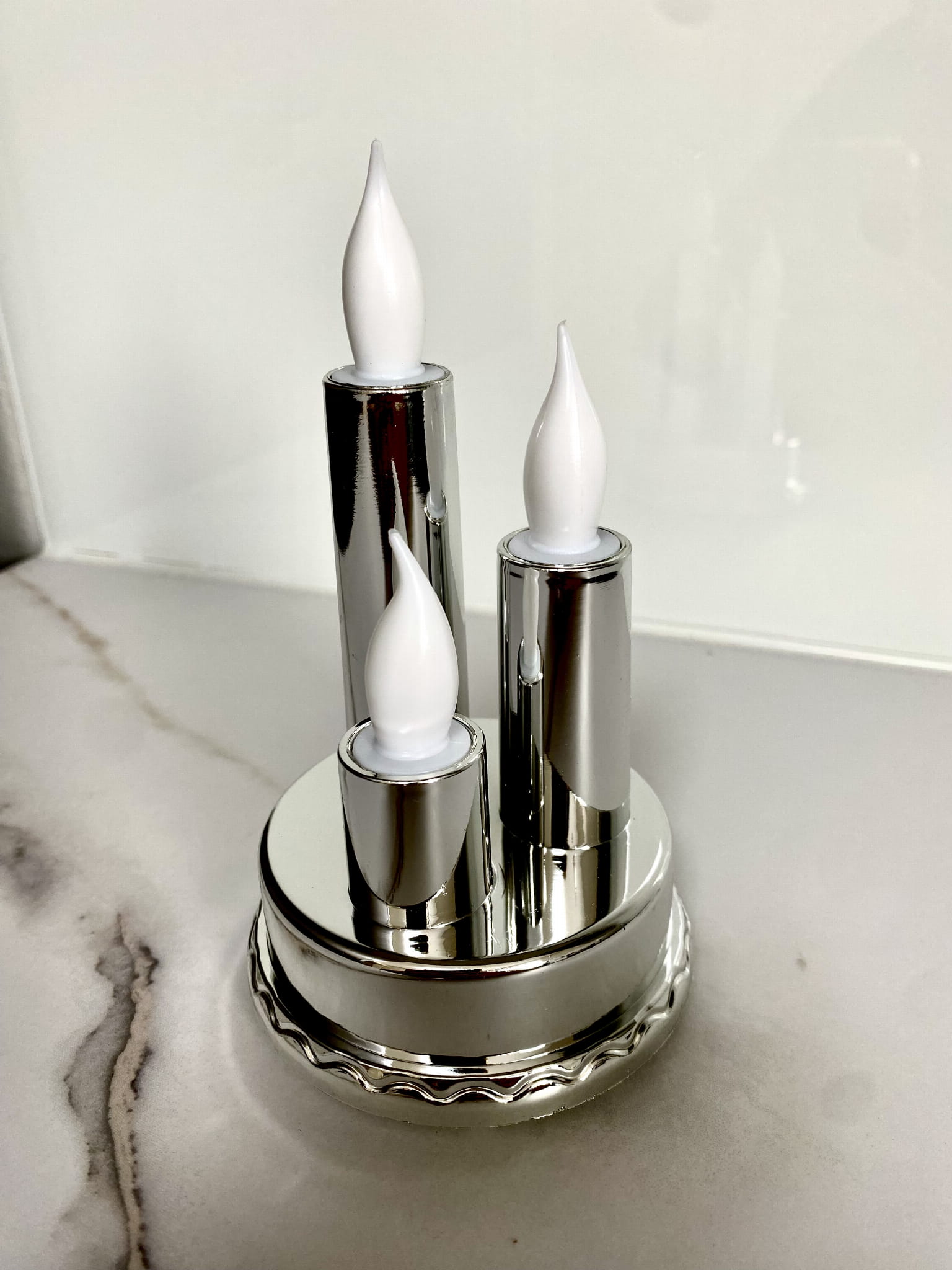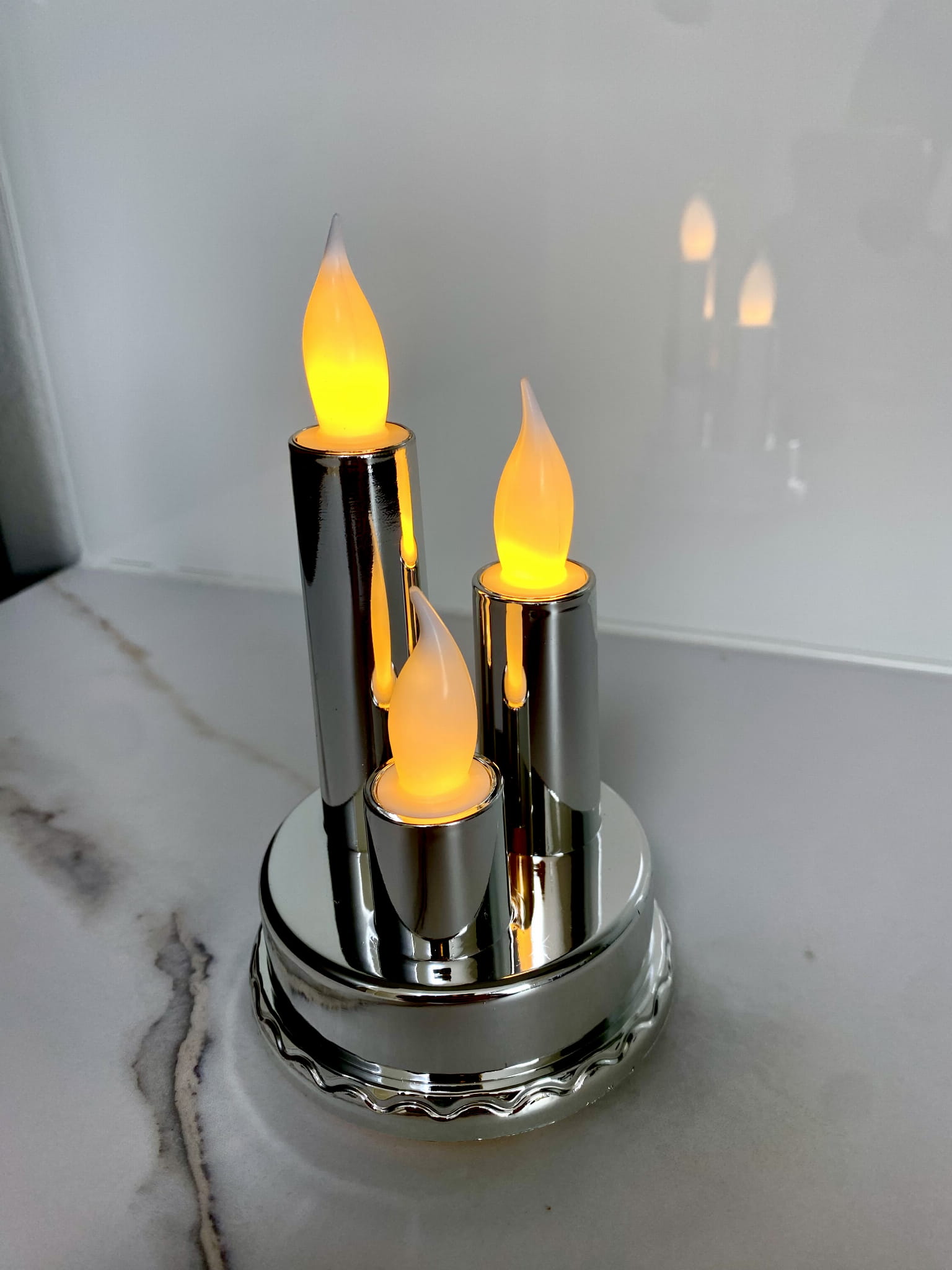 Świeca led TRIO srebrna znicz elektryczny na grób