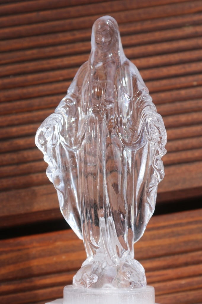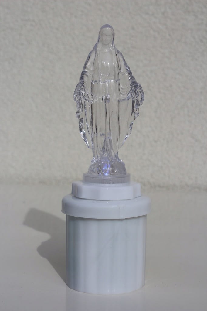 ZNICZ ELEKTRYCZNY NAGROBKOWY MARYJA. Posiada on białą ledową diode oraz 2 baterie R14.