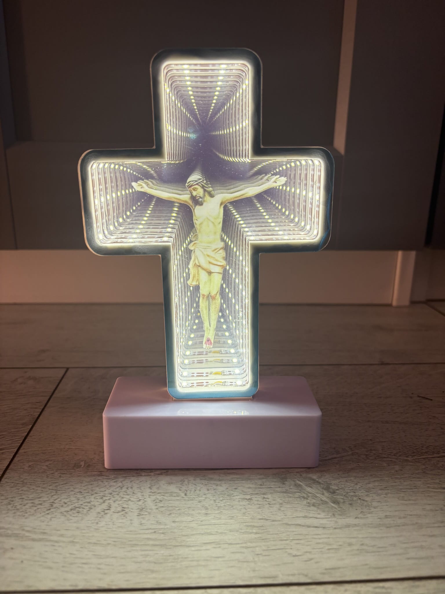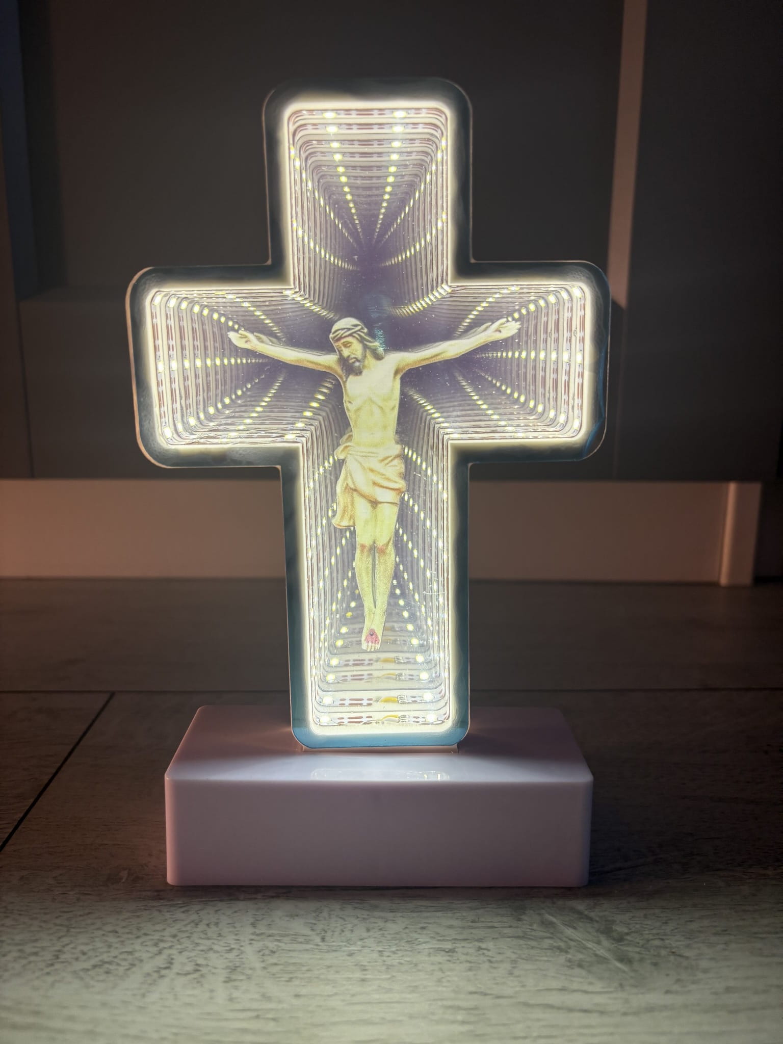 Znicz elektryczny KRZYŻ w wyjatkowym wydaniu. Lustrzany, 3D , nowoczesny. Nowość na polskim rynku. Solidnie wykonany.